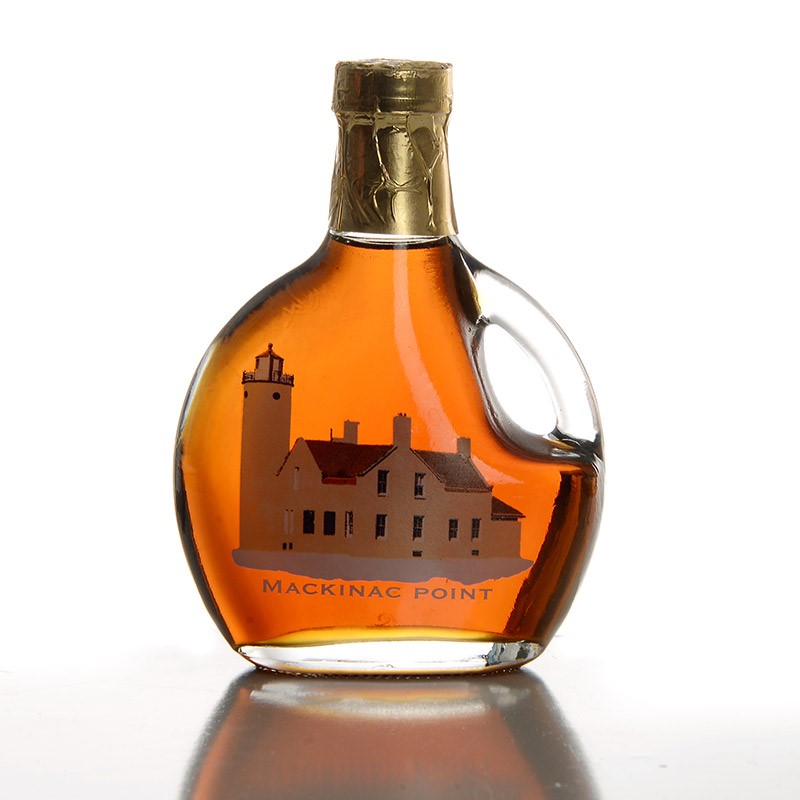 Golden Delicate Pure Maple Syrup in our most popular basque bottle featuring the Old Mackinac Lighthouse.