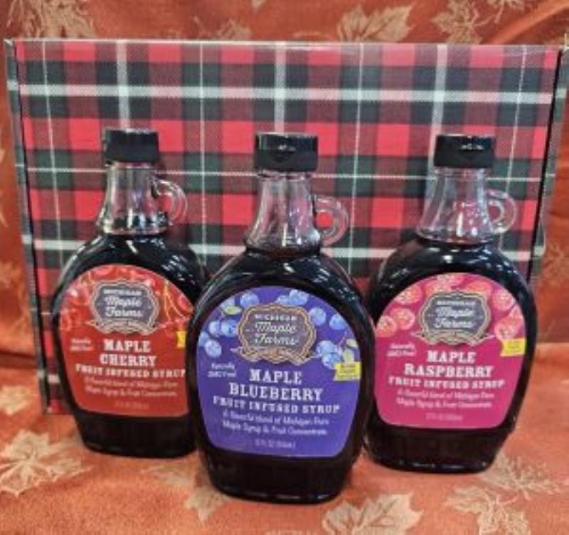 1 each of Blueberry Maple Syrup, Cherry Maple Syrup and Raspberry Maple Syrup