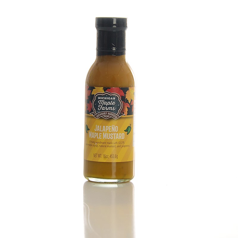 A sweet, spicy mustard to tickle your tastebuds; made from pure maple syrup, natural mustard and jalapenos. Kick your next grill night up a notch by adding this to your burgers, brats or chicken.