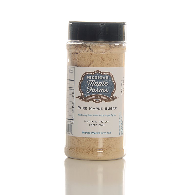 Pure Maple Sugar in a convienent shaker bottle. Our Pure Maple Sugar is made only from Pure Maple Syrup.